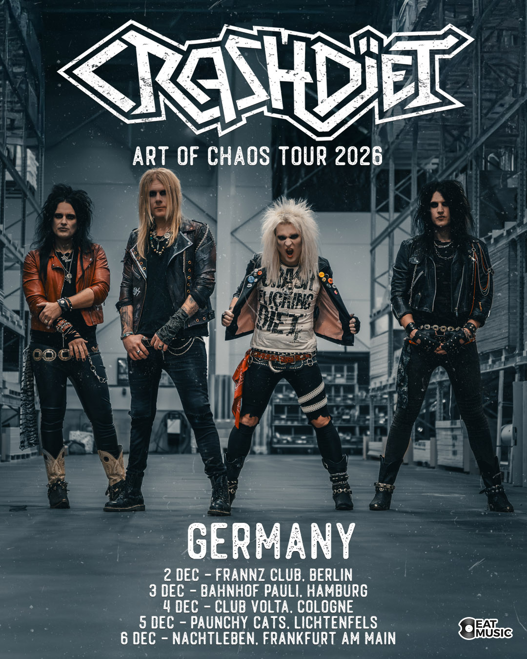 Swedish glam metal torchbearers CRASHDÏET are back with their seventh studio album, Art of Chaos, set for release on May 8th via Ninetone Records. The band describes it as “the ten sleaziest tracks we’ve written in ages” — a high-voltage return to the raw attitude, big hooks, and filthy swagger that defined their early sound. Packed with big choruses, razor-sharp riffs, and that signature CRASHDÏET punch, Art of Chaos marks a fresh chapter for the band while staying true to the spirit that built their legacy. You can pre-order the album on CD/LP directly from our shop today.